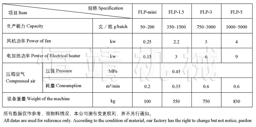 FLP 多功能流化造粒包衣实验机技术参数
